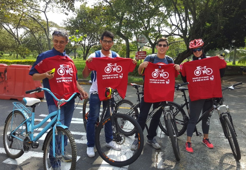 El 22 de septiembre del año pasado, a los estudiantes que participaron en el tercer día sin carro en todos los campus de la institución y en el marco del día mundial sin carro y sin moto, se les entregó una camiseta, una botella de agua y reflectivos, en un evento organizado de la mano con la Vicerrectoría de Bienestar Universitario y la Rectoría.