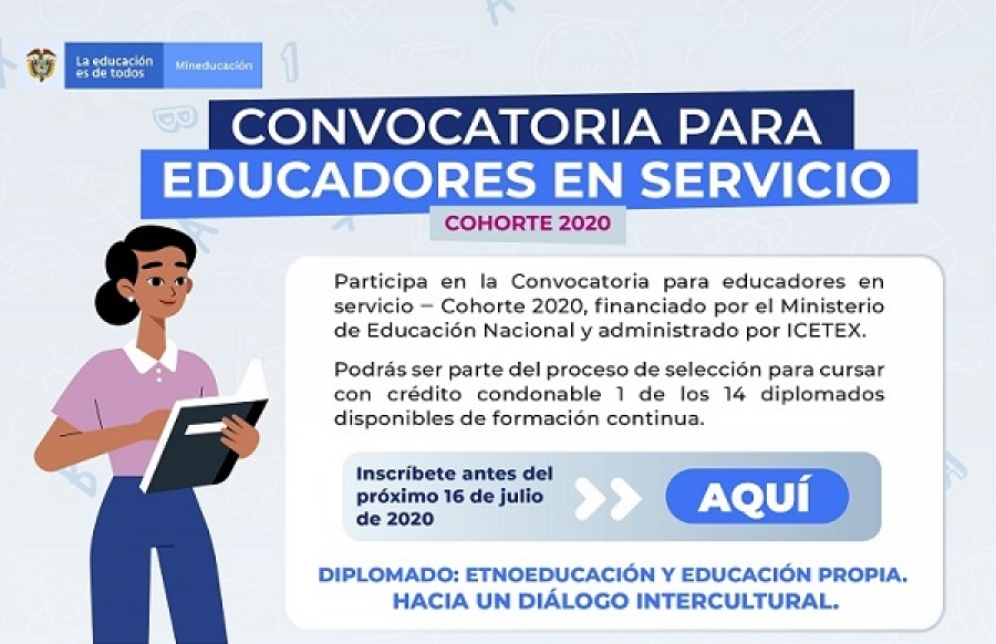Como parte de la Convocatoria para Educadores en Servicio – Cohorte 2020 – del Ministerio de Educación Nacional y con administración del ICETEX , la Universidad del Valle se complace en presentar el diplomado “Etnoeducación y Educación Propia, Hacia un Diálogo Intercultural”.