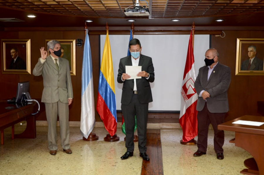 En el acto que se realizó este lunes 5 de abril de 2021 en el Salón del Consejo Académico en la Ciudadela Universitaria de Meléndez participaron también el Secretario General Antonio José Echeverry y el Vicerrector Administrativo Ruben Darío Echeverri.