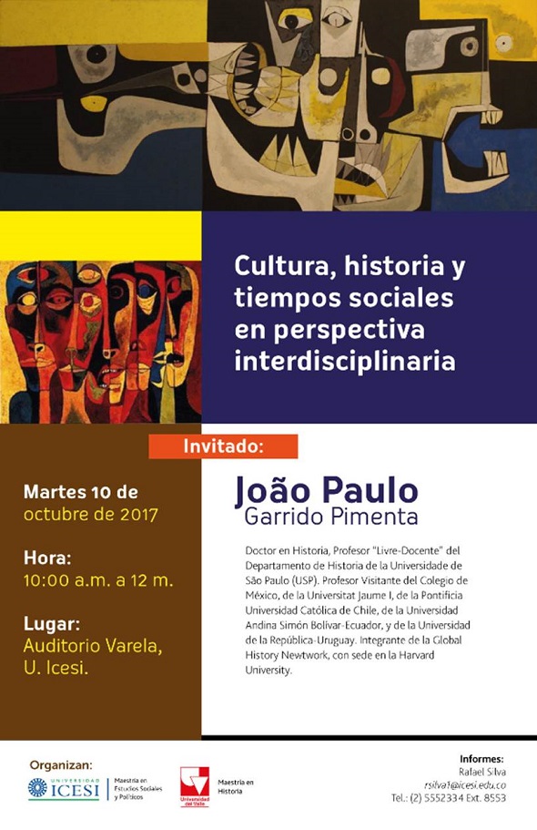 La Maestría en Historia de la Universidad del Valle y la Maestría en Estudios Sociales y Políticos de la Universidad Icesi, por medio de su convenio de movilidad, tienen el gusto de invitar a la conferencia: