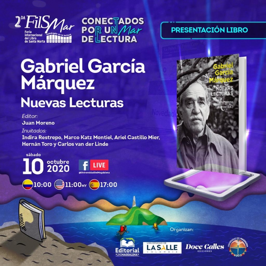 La Escuela de Estudios Literarios de la Universidad del Valle invita a la presentación del libro Gabriel García Márquez: Nuevas lecturas, con textos de Indira Restrepo, Marco Katz Montiel, Ariel Castillo Mier, Hernán Toro y Carlos van der Linde. El editor de la publicación es Juan Moreno Blanco, profesor de esta Escuela y especialista en la obra de García Márquez. La presentación se celebra en el marco de la 2da Feria Internacional del Libro de Santa Marta.