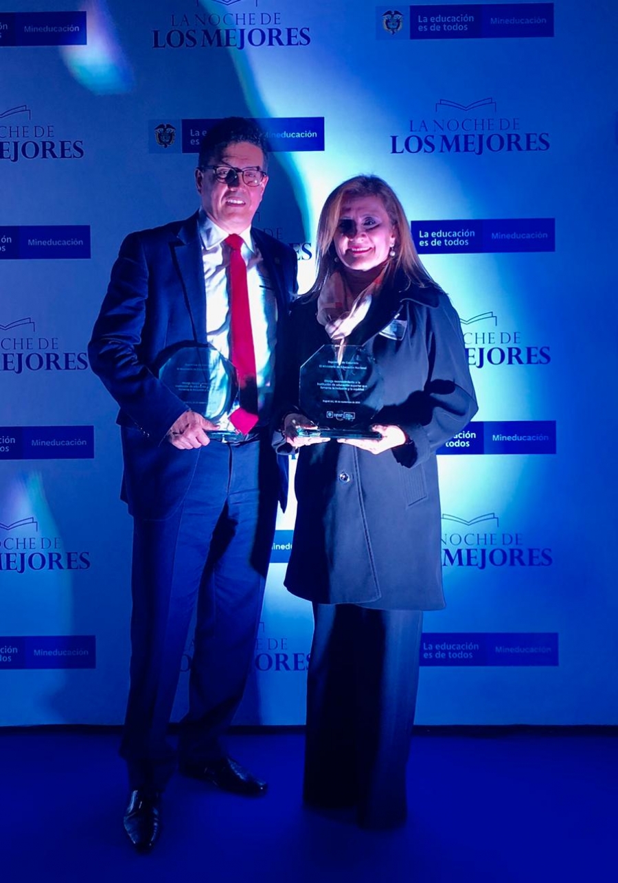 En representación del Rector Edgar Varela Barrios, la profesora Claudia María Payán Villamizar, Directora de Autoevaluación y Calidad Académica, recibió el premio de manos del Viceministro de Educación Luis Fernando Pérez Pérez. Para la profesora Payán este es un reconocimiento a varios años de trabajo de un equipo humano multidisciplinar comprometido con el bienestar de los estudiantes.