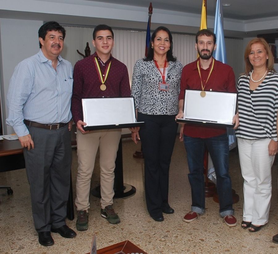 La Vicerrectora Académica Liliana Arias Castillo hizo entrega ayer, 5 de julio d de 2016, de los reconocimientos que el Ministerio de Educación Nacional otorgó a tres estudiantes de la Institución por sus méritos y consagración académica reflejados en los resultados de las Pruebas Saber Pro 2014 centradas en la valoración de las competencias genéricas y específicas de más de 14 mil estudiantes de todo el país.