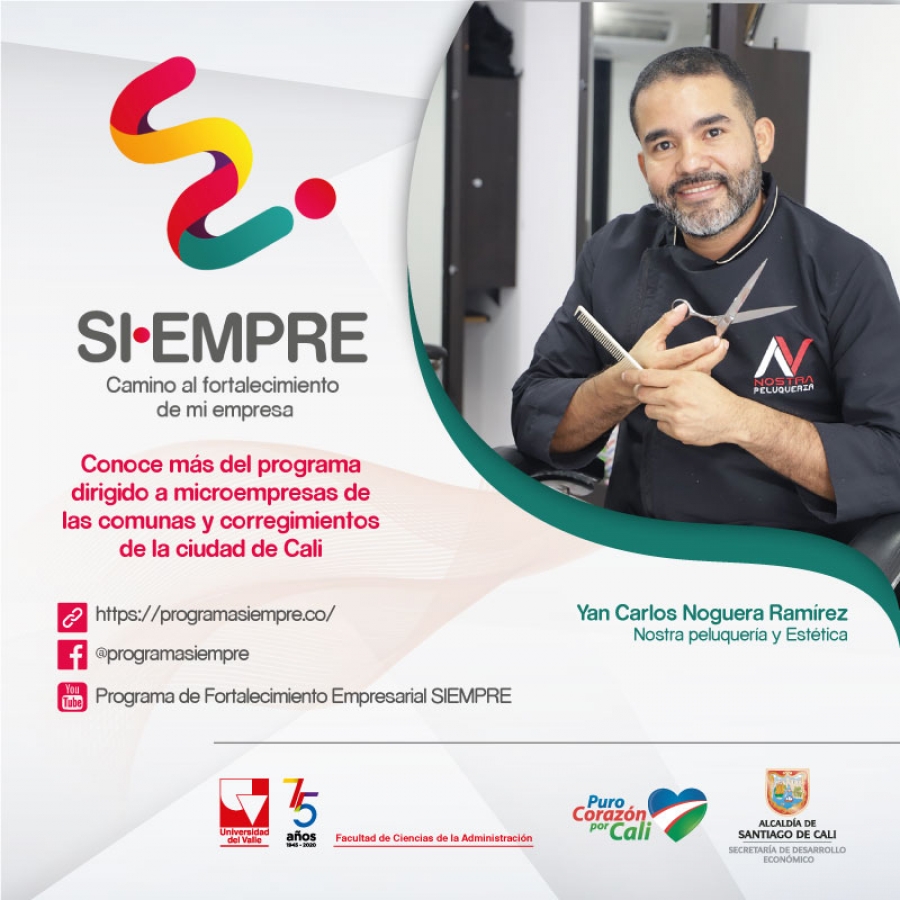 El Programa de Fortalecimiento Empresarial SI-EMPRE, es uno de los convenios interadiminstrativos con el cual la Universidad del Valle, a través de su Facultad de Ciencias de la Administración, está capacitando desde el mes de agosto a mil microempresarios de las comunas y corregimientos de la ciudad de Cali, en la reformulación de sus modelos de negocio, con el fin de adaptarse a la nueva normalidad.
