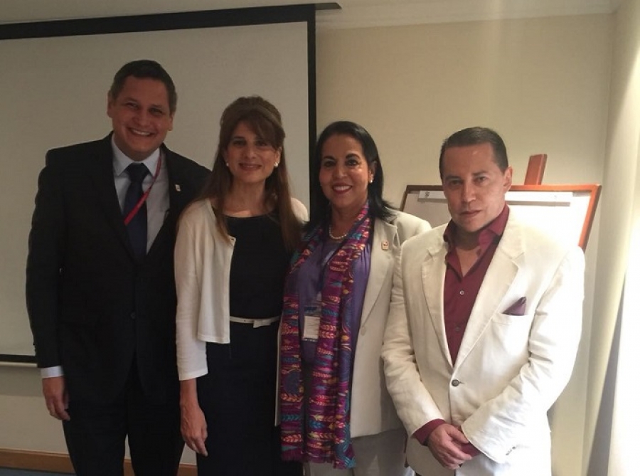 Fotografía: Jesús Alberto Hernández, Decano de Salud; HRH Princesa Diana Mired; Liliana Arias, Vicerectora Académica, Oscar López Pulecio, Asesor de la Rectoría.