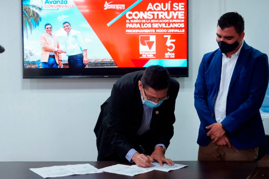 El rector Edgar Varela Barrios y el alcalde de Sevilla Jorge Palacio ultimaron detalles para ratificar la creación de un nodo de la Universidad del Valle en ese municipio del Oriente del Valle. Con la firma del ‘Convenio Interadministrativo’ el nodo abrirá inscripciones para el primer semestre del 2021.