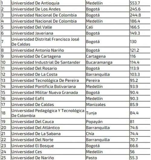 El ranking se hizo teniendo en cuenta las publicaciones hechas por los investigadores de las universidades en revistas internacionales publicadas en el exterior. En este ranking la Universidad del valle ocupó el quinto puesto.