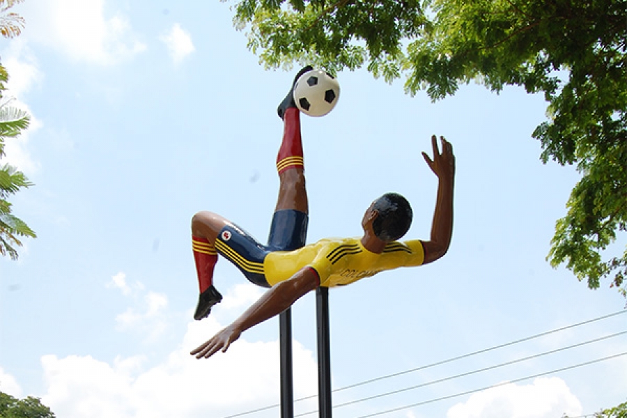La escultura no representa a un futbolista en particular y está inspirada, según cuenta el artista, en el gol de ‘chalaca’ que hizo Jeison Murillo en enero de 2017 jugando para el Inter de Milán, califiicado como el gol del año en la liga italiana. Murillo, un futbolista nacido en un barrio popular de la ciudad de Cali, es para el artista un buen referente del fútbol contemporáneo.