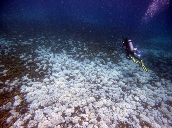 Arrecife completamente blanqueado en Isla Iguana Panamá. Foto: Juan Maté