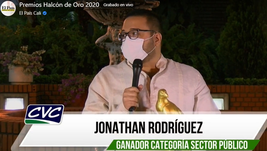 El egresado de la Licenciatura en Ciencias Sociales de la Universidad del Valle Jonathan Rodríguez Camacho ganó el premio Halcón de Oro 2020 que entrega de manera anual la CVC a las mejores propuestas ambientales de la región.