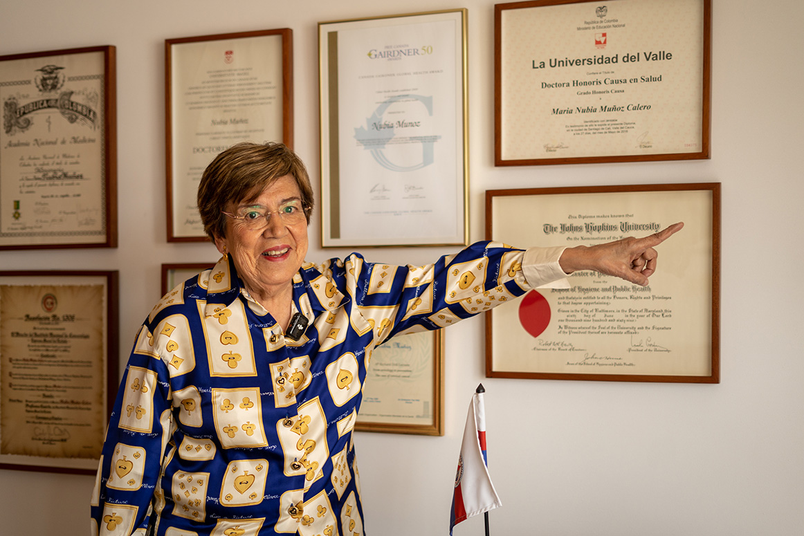 Nubia Muñoz es médica patóloga y científica emérita de la Universidad del Valle. También es magíster en Salud Pública de la Universidad Johns Hopkins y profesora emérita del Instituto Nacional de Cancerología. En 2008 fue nominada al Premio Nobel de Medicina.