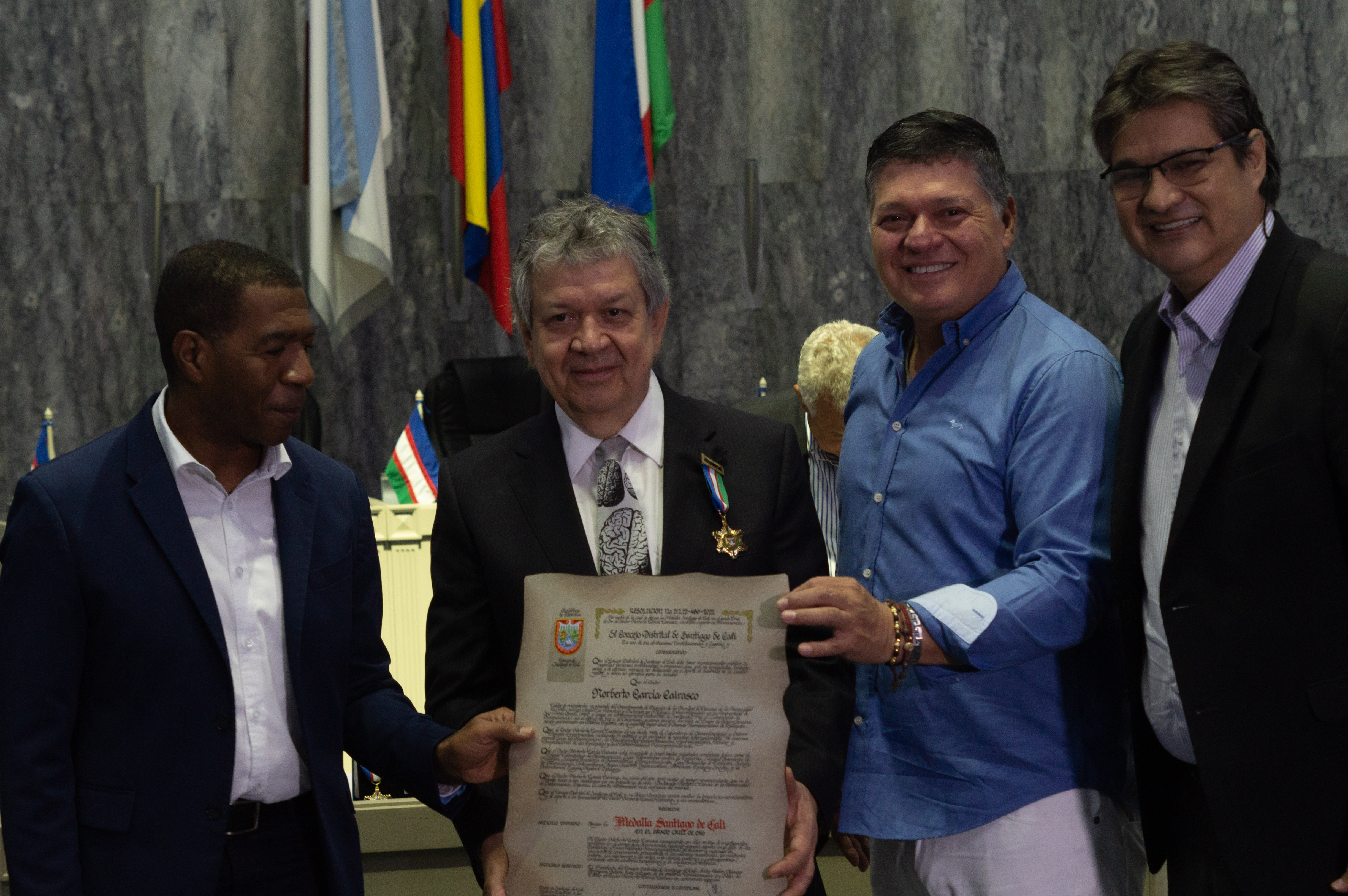El Concejo Distrital de Cali vivió una fiesta en torno al papel movilizador de las ciencias con la entrega de la medalla Santiago de Cali en grado Cruz de Oro a dos investigadores egresados de la Universidad del Valle: Norberto García Carrasco y Jairo Palta. Ambos científicos, egresados del Departamento de Biología, han llevado el nombre de la institución y la ciudad por el mundo no solo por sus aportes a las ciencias, la relevancia de sus estudios y su compromiso con la formación de nuevos investigadores, sino también por su historia, que es un testimonio del poder de transformación social de la educación pública.