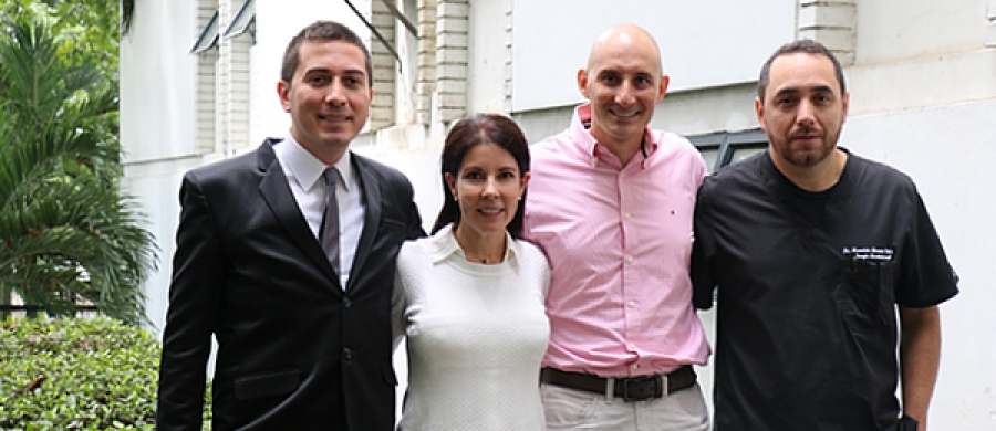 Fotografía (de Izq. a der. ): Los odontólogos Joaquín Benjumea Marulanda, Ángela Dominguez, Sergio Velázquez y Mauricio Moreno