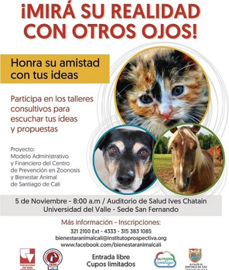 La Secretaría de Salud a través del Centro de Zoonosis y el Instituto de Prospectiva, Innovación y Gestión del Conocimiento de la Universidad del Valle invitan a participar del taller para la construcción colectiva del modelo administrativo y financiero del Centro de Prevención en Zoonosis y Bienestar Animal del Municipio.