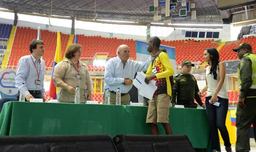 Durante el primer acto público de compromiso, realizado la semana pasada en el Coliseo El Pueblo, alrededor de un centenar de jóvenes, pertenecientes a diez ‘parches’ de las zonas de ladera, entregaron a sus familiares y al Alcalde Maurice Armitage sus compromisos de cambio, acompañados de las hojas de ruta en las que cada uno trazó su nuevo proyecto de vida. Por su parte, el mandatario ratificó el compromiso de la Alcaldía de Cali de brindar a los jóvenes los beneficios propuestos por el proyecto, haciendo énfasis durante su discurso en la importancia de la oferta de empleo.