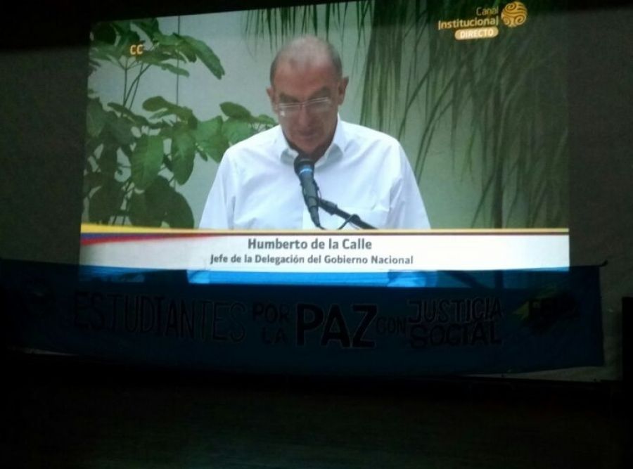 Estudiantes de la Universidad del Valle se dieron cita anoche en el Auditorio 5 de la Sede Meléndez para ver la trasmisión del acuerdo final de la negociación entre el Gobierno y las FARC y la posterior alocución del Presidente Santos.